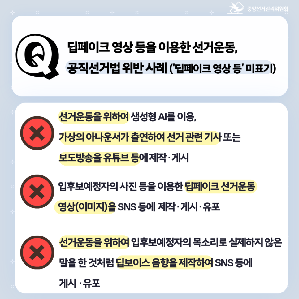 딥페이크 영상 등을 이용한 선거운동 Q&A